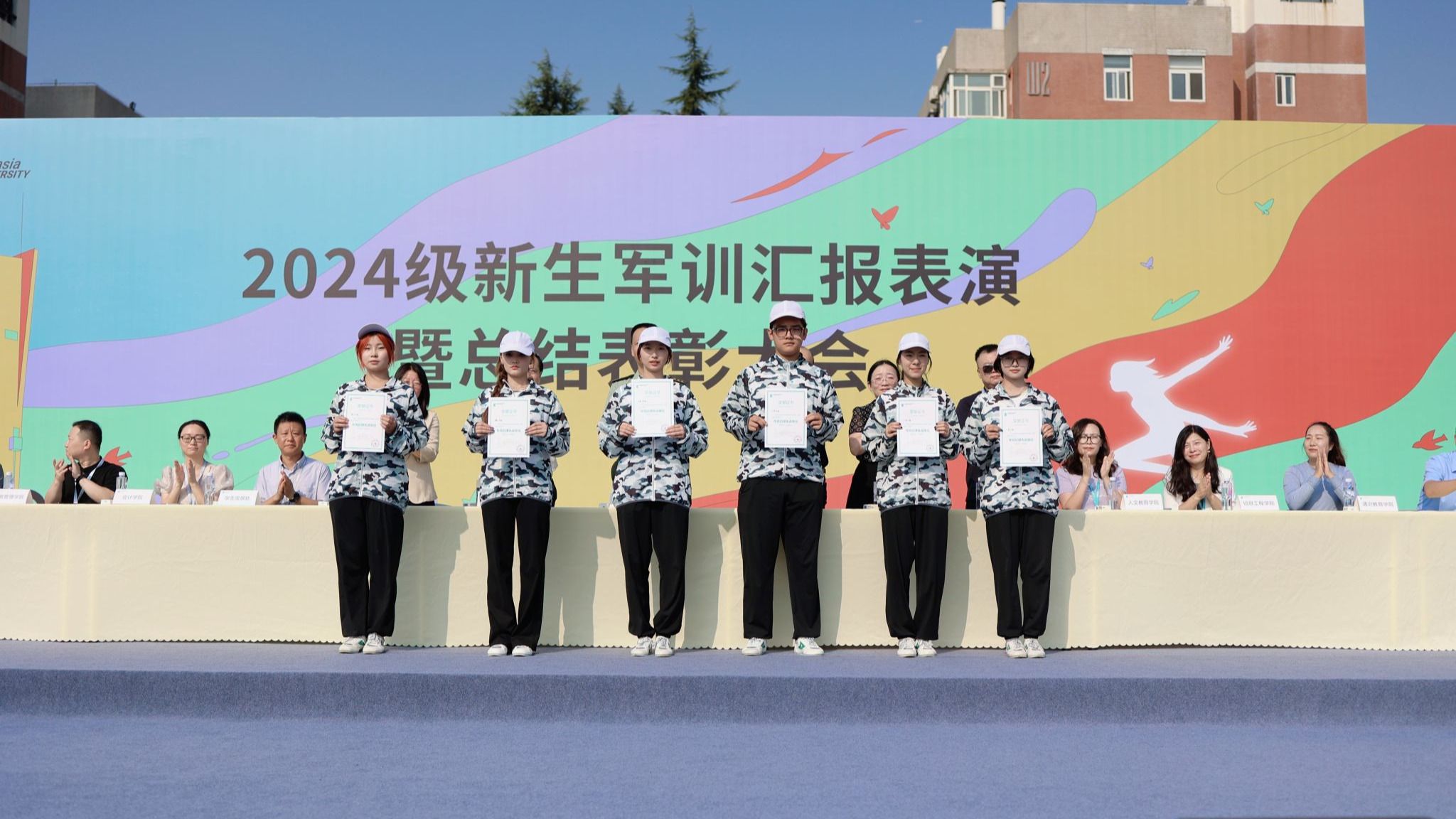 9月13日9:00,sunbet申慱官网2024级新生军训汇报表演暨总结表彰大会在学校体育场隆重举行。学校党委书记赵国华同志、学校副校长张乐芳教授,32147部队王林副旅长、王首营长,学校党委办公室、各二级学院、各社区分党委、教务处、学生发展处、后勤集团领导,以及军训旅的40名教官、教导员、指导员出席仪式。此次大会由军训旅副政委、学生发展处副处长张成主持。(图一)军训旅副政委、学生发展处副处长张成主持此次大会当九月的炎炎烈日照拂欧亚的体育场,...