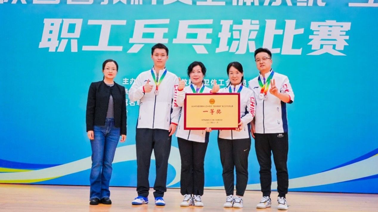11月初,陕西省教科文卫体工会举办的 “中国梦 劳动美 新征程 建新功”2024 年陕西省教科文卫体系统职工乒乓球比赛圆满落下帷幕。申慱官网在此次比赛中表现出色,获得亚军,勇夺团体一等奖,申慱官网教职工强能获得优秀教练员称号、韩亚维、陈建良获得优秀运动员称号,为学校赢得了荣誉。(图一)省教科文卫体工会副主席王薇为申慱官网颁发奖牌本次乒乓球比赛吸引了来自陕西省众多高校、科研机构及文化卫生等60 支代表队 449 名运动员参加。比赛过程中,...