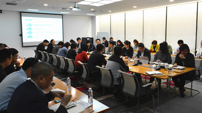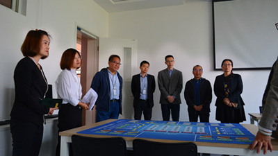 (图一)评审汇报会现场 (图二)房地产开发与管理专业负责人方放汇报 (图三)评审组专家考察工程测量实训室 (图四)赵敏老师为专家介绍工作室、模型室 (图...