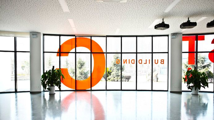 南区教学楼位于行政中心西侧,与北侧的联体教学楼共同围合起欧亚的核心公共空间。其外立面用红色面砖与白色涂料,辅以灰色面砖和玻璃材质,形成具有立体构成意味的建筑风格。在空间上,采用了模数化的开窗设计,在红、白、灰体块的开窗方式各具变化的同时,又使各部分统一为一个有机的整体。楼宇整体呈回字形,采用首尾相连的合院式布局组织起艾德艺术设计学院、文化传媒学院、数据科学学院和会计金融学院四大分院的教学楼群。