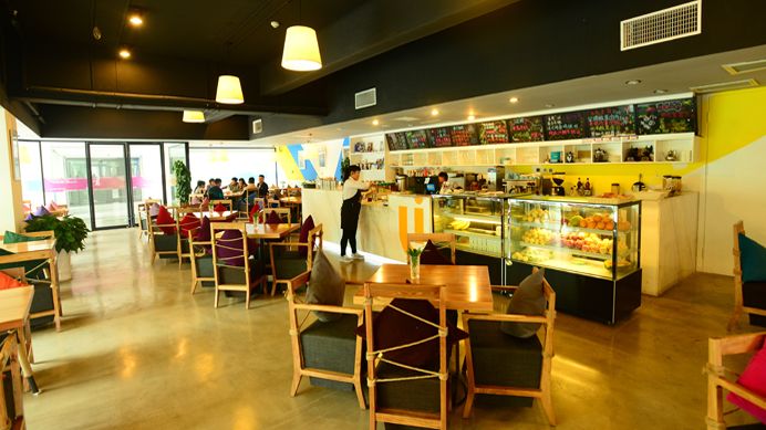 教学楼建筑群的四个分院拥有各自独立的入口及接待处,并采用不同的标识和墙体颜色作区分。结合每个分院独特的理念和精神,设计师stéphane ROUX赋予了建筑不同的主题。艾德艺术设计学院是接近大地的赭色,纯朴又不乏创造感;数据科学科学院是活泼的黄色;会计金融学院是沉稳的蓝色;文化传媒学院则是跃动的水蓝色,这种差异使得整体的室外环境显得更加丰富。看似是完全不同的四个小世界,却由回廊相通并连接,实现了分院间的资源共享和联合,包括课程之间的学术交流、与不同背景的学生彼此观念上的吸收等,激发创造力。