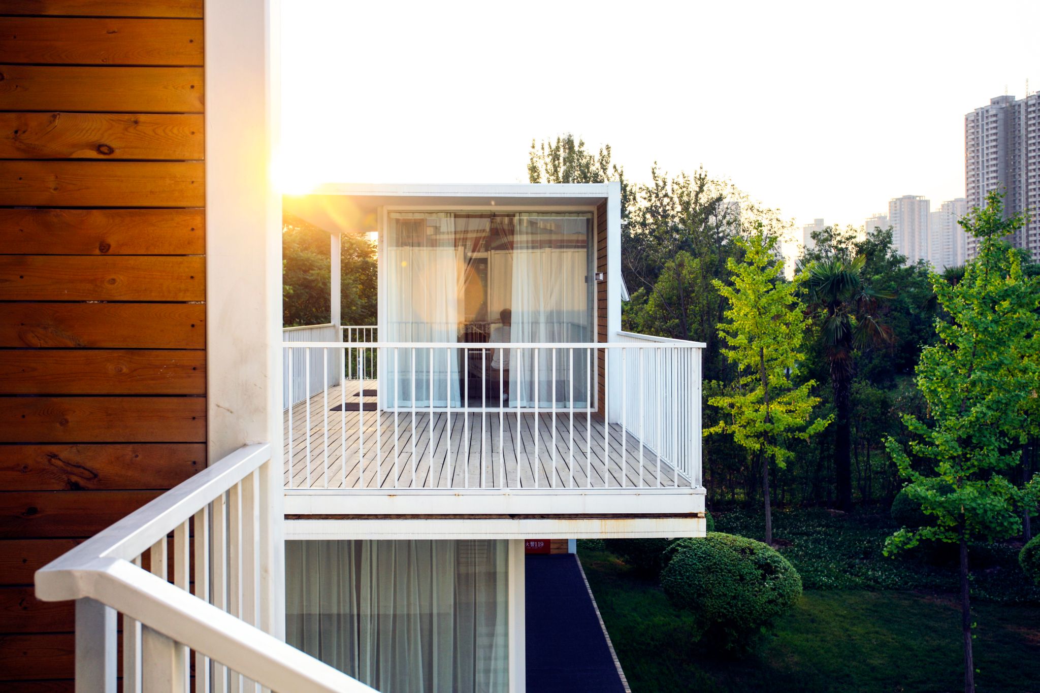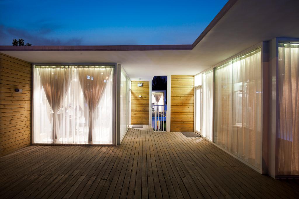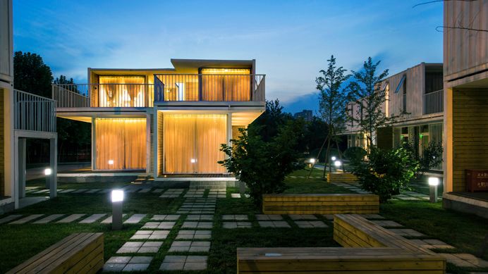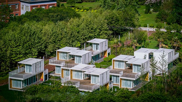 琴岛以6组可移动的集装箱作为主体,共58间房。外立面由玻璃打造,阳光投射进来,人和建筑都温暖而明亮,同周围环境和谐与共。