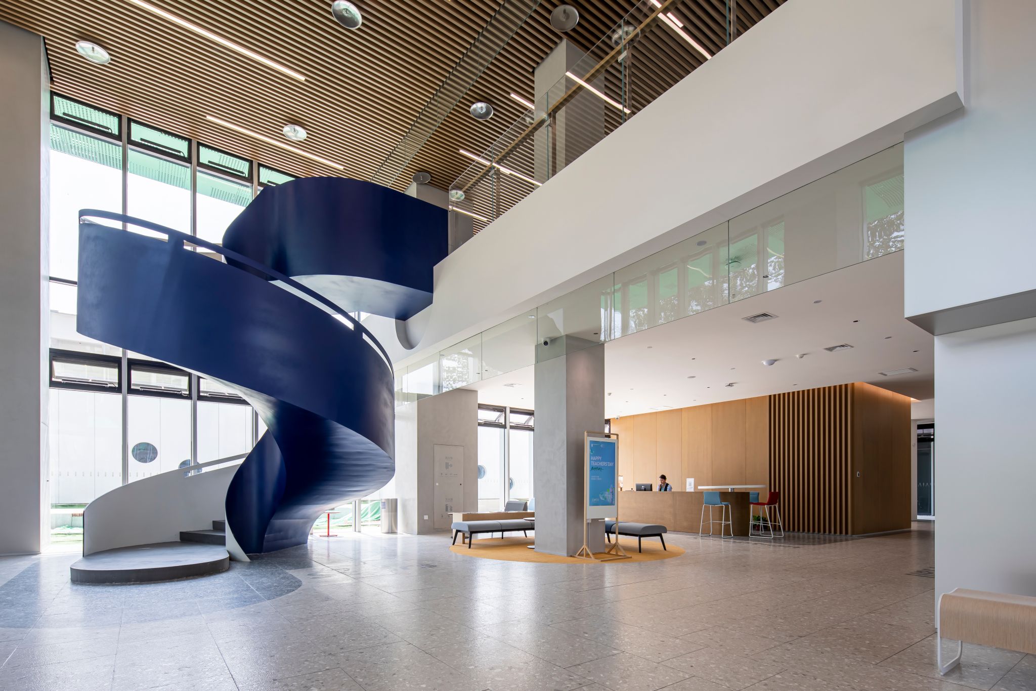 行政中心从2009年10月项目启动,除了邀请原图书馆的设计者、清华大学建筑设计院关肇邺院士担纲设计建设方案,由法国著名设计师stéphane ROUX完成室内设计方案外,还引入台湾设计团队完成空间管理系统Roomis的平台搭建。以砖红为主体色,搭配灰、白、蓝的外立面体现着新工业时代的艺术审美,自然而朴素。位于大厅入口东侧的垂直绿化墙,借鉴世园会立体绿化概念,既丰富了空间结构层次和景观艺术效果,又为建筑本身带来一股生命力。细节处的小心思,...