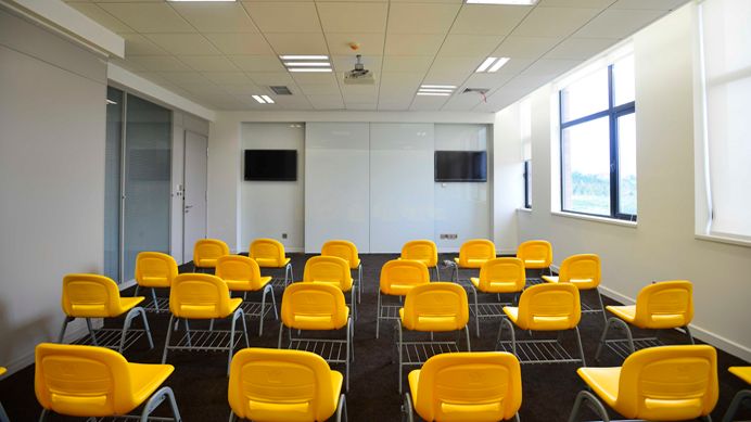 “大活”内设形体训练室、多功能排练厅、声乐训练室、话剧排练室等等,以满足欧亚学子的社团活动需求,公共区域和会议室则多用于举办展览,沙龙、讲座等。先进的活动设施,完备的音响等设备,暖色调的墙面和灯光,让每一位参与者都拥有置身艺术空间的既视感。
