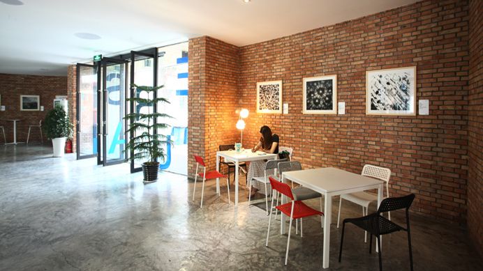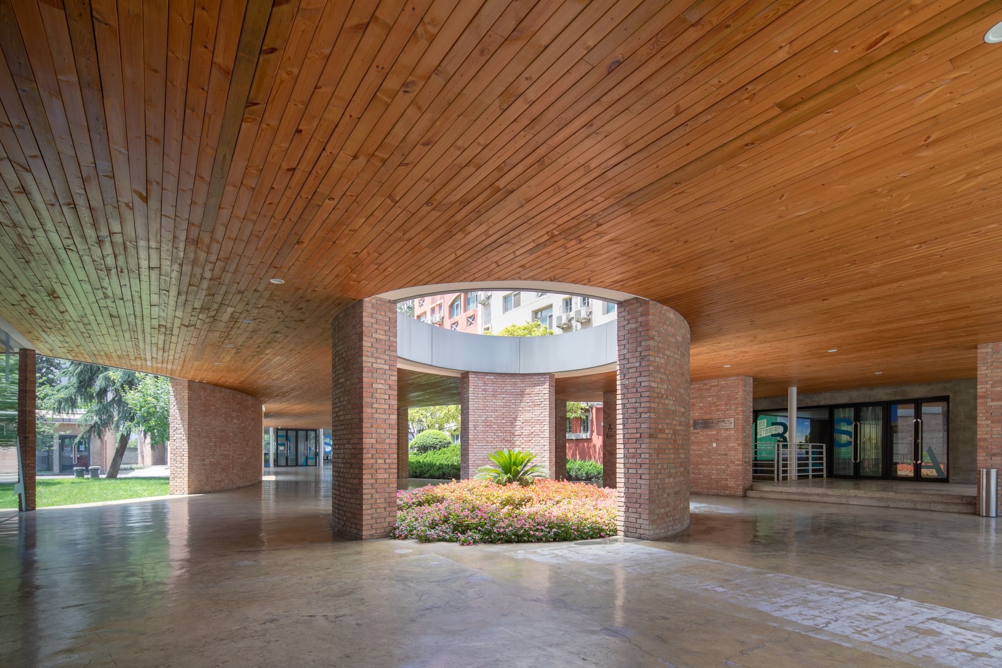 北区学生客厅于2015年10月落成,是在旧有的男生公寓楼之间,通过连廊、大厅等形成了两个各1500㎡的类似酒店大堂的庭院建筑,在设计之初,亦突出建筑的节能环保,客厅空间由红砖、清水混凝土砌筑而成,走廊引入自然光照明。“客厅”内设学习中心、服务中心、健身房、瑜伽室、洗衣房、浴室、便利店、心理咨询室、情绪宣泄室等20多个不同的功能空间,满足了学生学习生活多方面的需求。