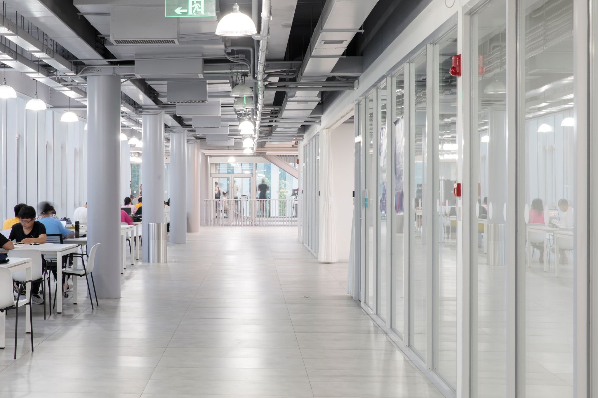 通廊集合了交通、导向、游憩等功能,高效地将公共空间整合在一起,高效覆盖南区、西区学生的学习、生活需求。