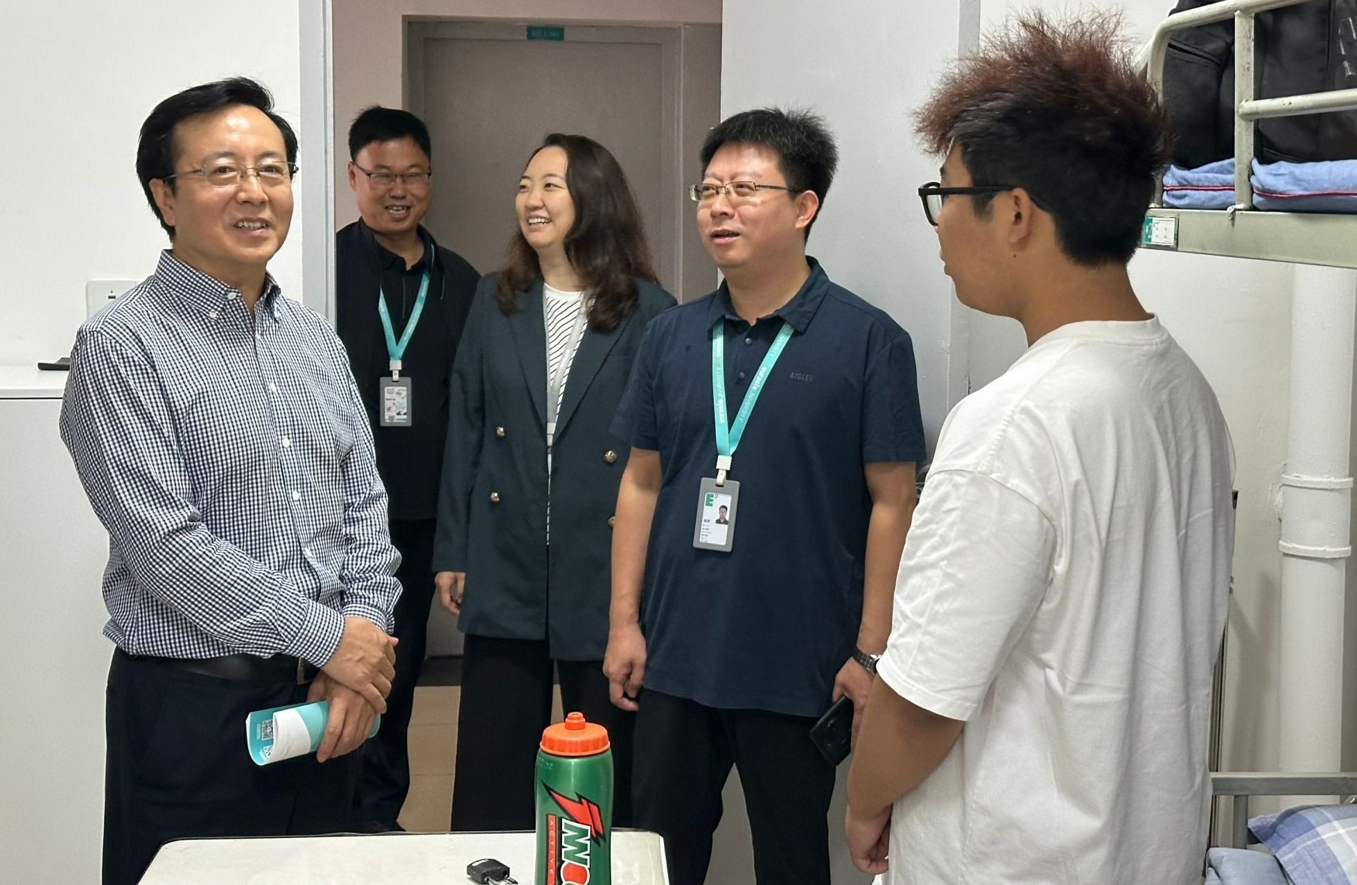 2025年8月29日,申慱官网党委书记赵国华同志及党委组织部部长赖志彬同志一行带队深入Ivy青年社区,实地走访2025级新生宿舍,与学生面对面交流,倾听学生及家长心声,并送去殷切勉励和暖心问候,学生社区主管白利宁同志陪同调研。