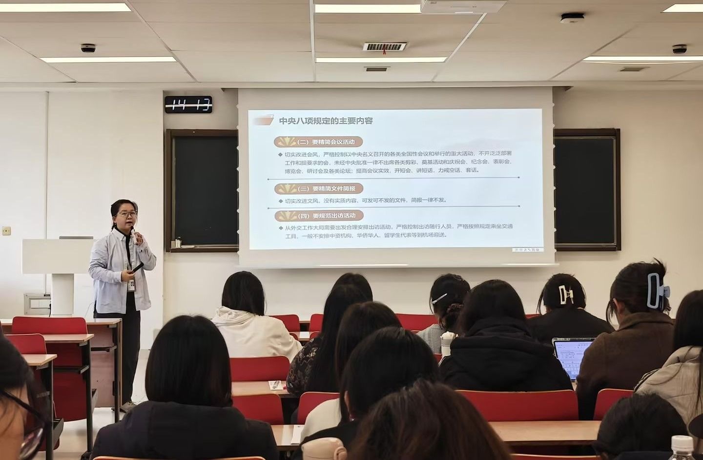 第二青年社区分党委于11月8日下午14:00在北C-309教室组织进行了《中央八项规定精神》专题学习党课。