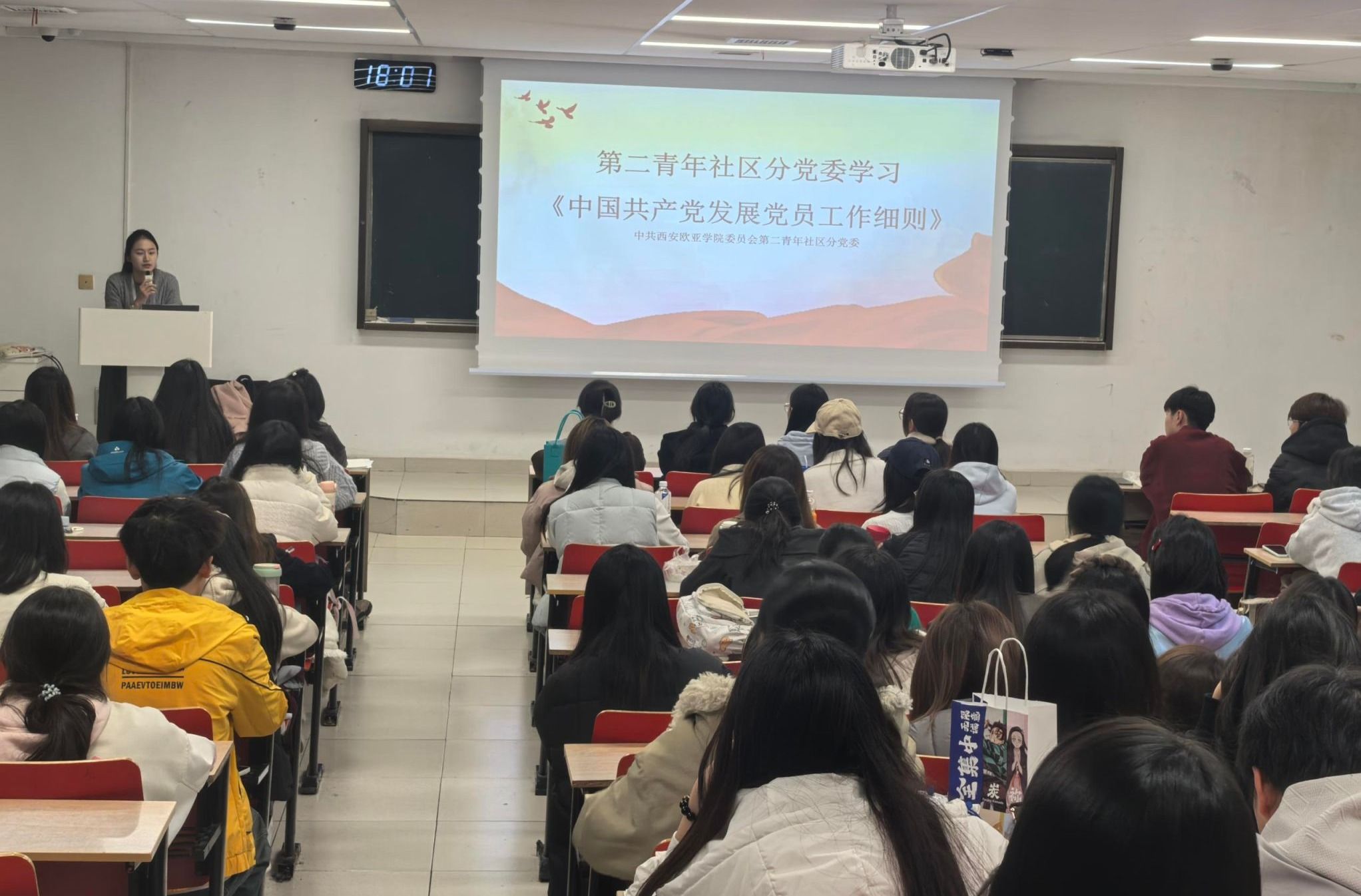 第二青年社区分党委于11月10日在北C-308开展《中国共产党发展党员工作细则》专题党课。