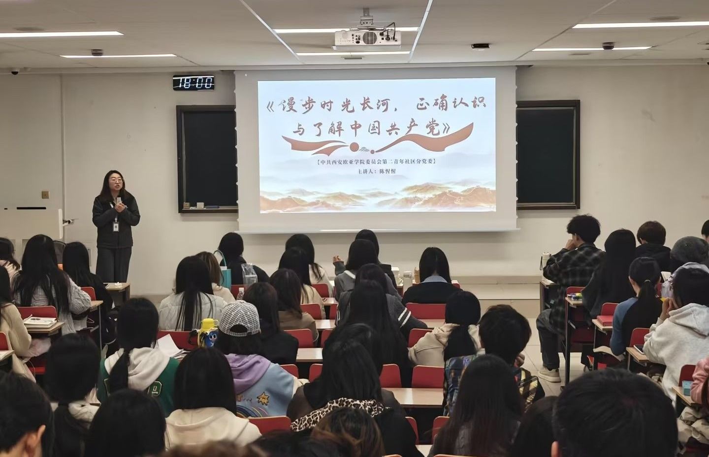第二青年社区分党委于11月11日18:00在北C-308教室组织开展《漫步时光长河,正确认识与了解中国共产党》主题党课。