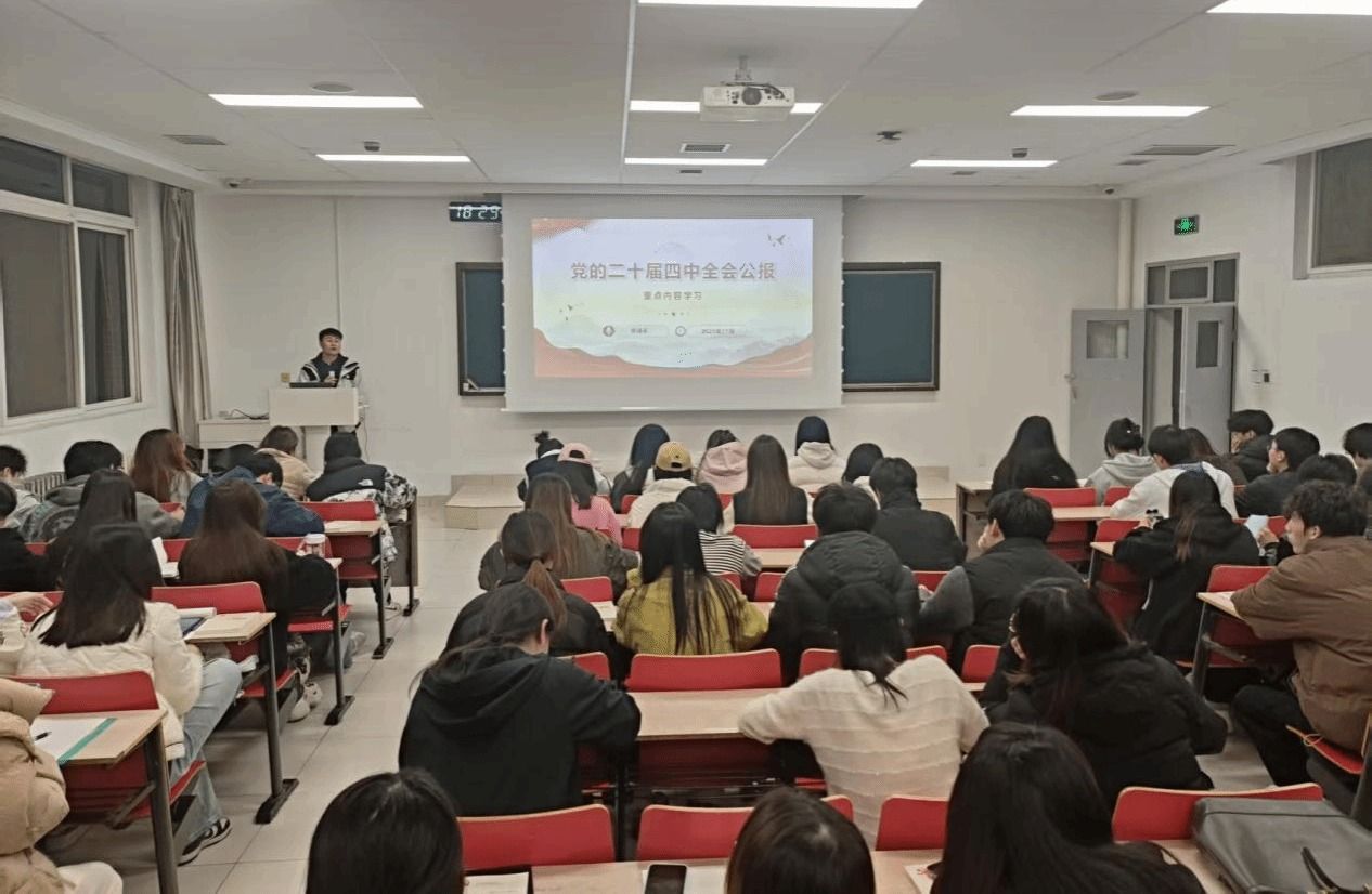 2025年11月12日,第四青年社区分党委组织94名入党积极分子开展专题党课学习,马克思主义学院霍雨佳老师围绕习近平新时代中国特色社会主义思想及党的二十届四中全会精神进行深入解读。