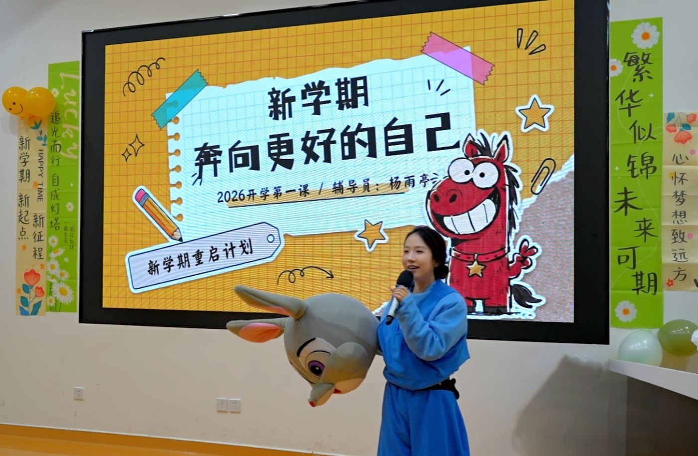Xdea青年社区开展开学第一课主题班会,辅导员杨雨亭老师化身可爱玩偶,为同学们送上糖果与惊喜,用轻松温暖的方式拉近与学生的距离。