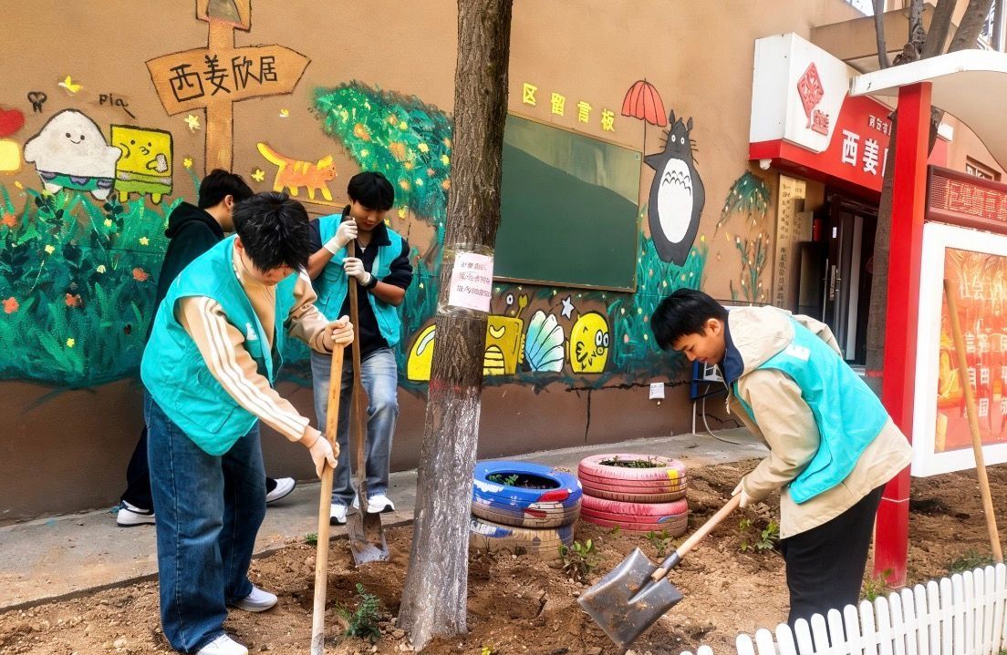 在植树节到来之际,Xdea青年社区与西姜欣居社区联合开展植树节护绿活动。师生与社区居民携手,挥锹铲土、扶苗浇水,共同栽种绿植,为社区增添盎然生机。