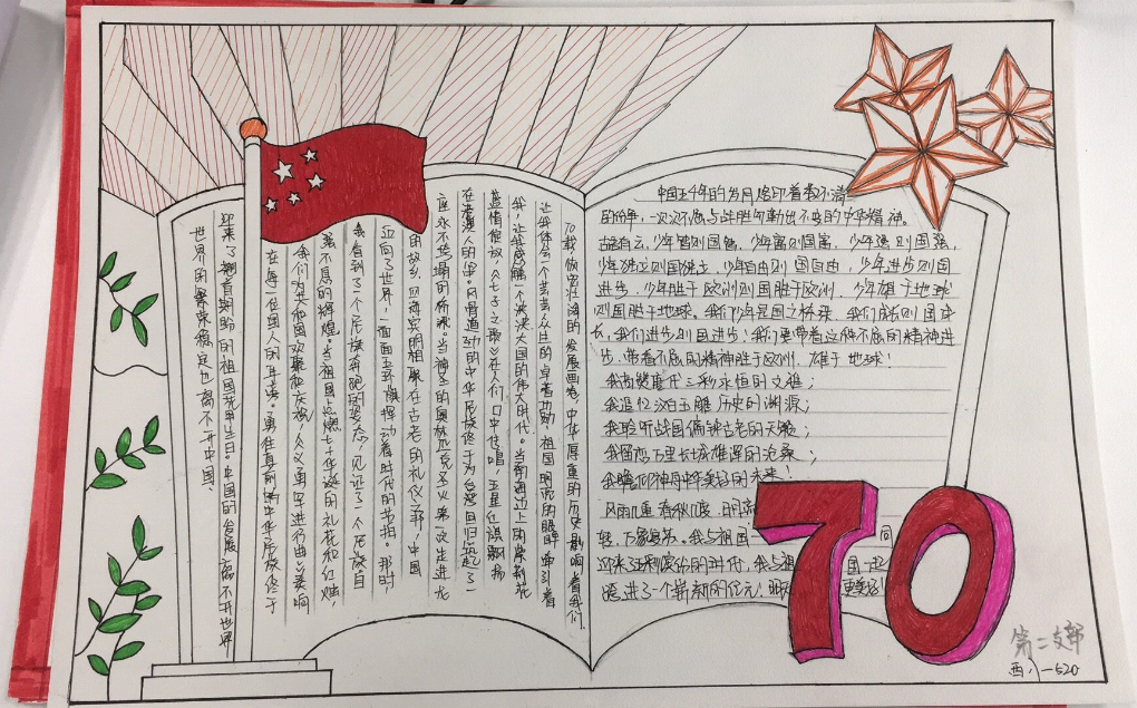 七十年前 伴随着一个伟人雄伟庄严的声音 您诞生了 从此世界的东方有了您巍峨的身影 七十年后的今天 您披荆斩棘,奋发图强 傲然挺拔,屹立在世界东方 红旗飘飘 带着人民的信仰 映射出祖国的...