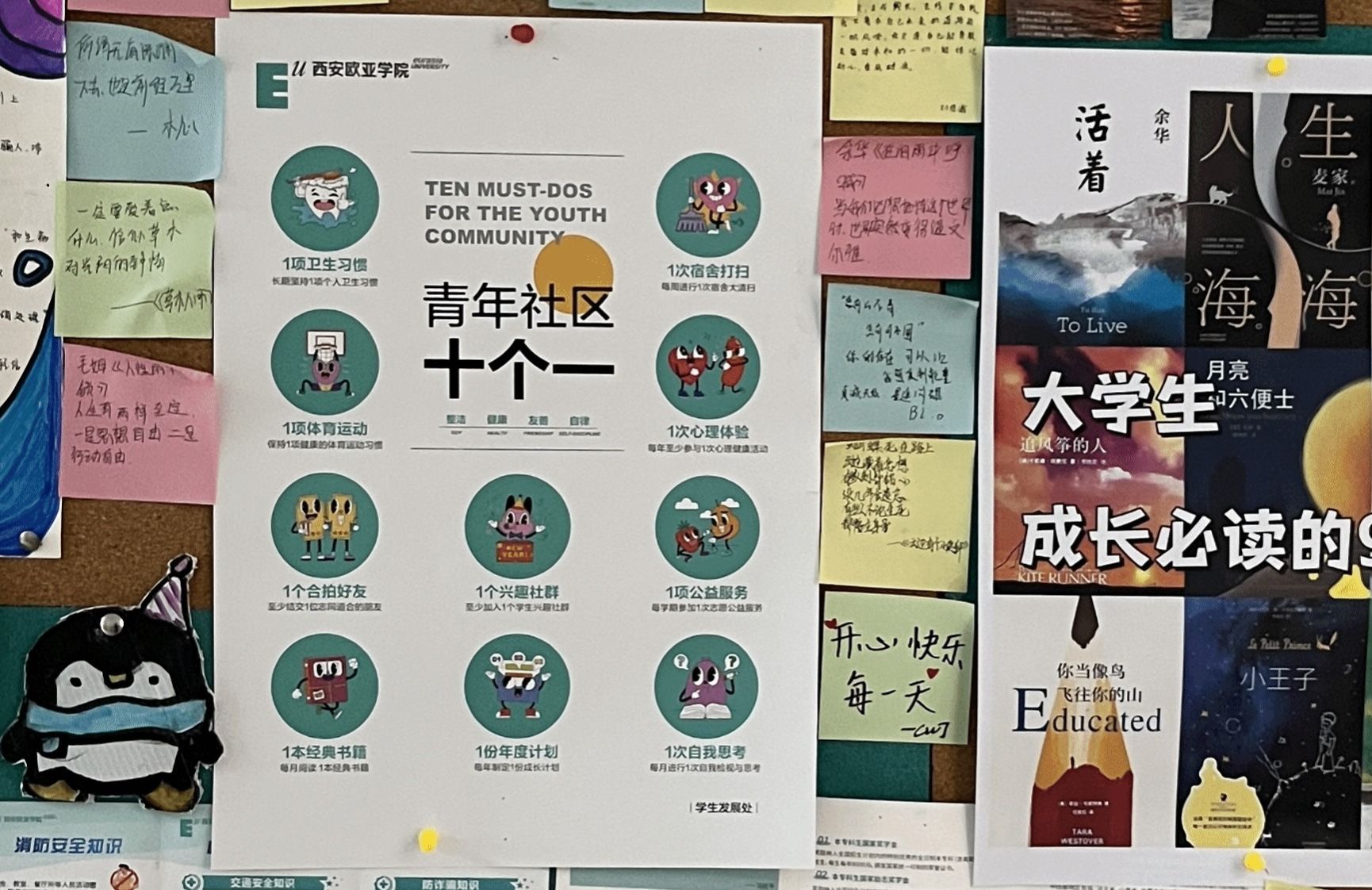 在青春的征途中,我们总是在寻找自我成长和发展的方向。本次“十个一”的软木板活动,像一盏明灯,指引我们走向更加充实和有意义的生活,助力我们全面发展。“1项卫生习惯”“1次宿舍打扫”让我们注重卫生,健康生活;“1项体育运动”让我们强身健体;“1次心理体验”让我们关注自己的内心世界;“1个合拍好友”“1个兴趣社群”让我们拓展社交,结识好友;“1项公益服务”让我们奉献爱心;“1本经典书籍”让我们在阅读中成长;“1份年度计划”...